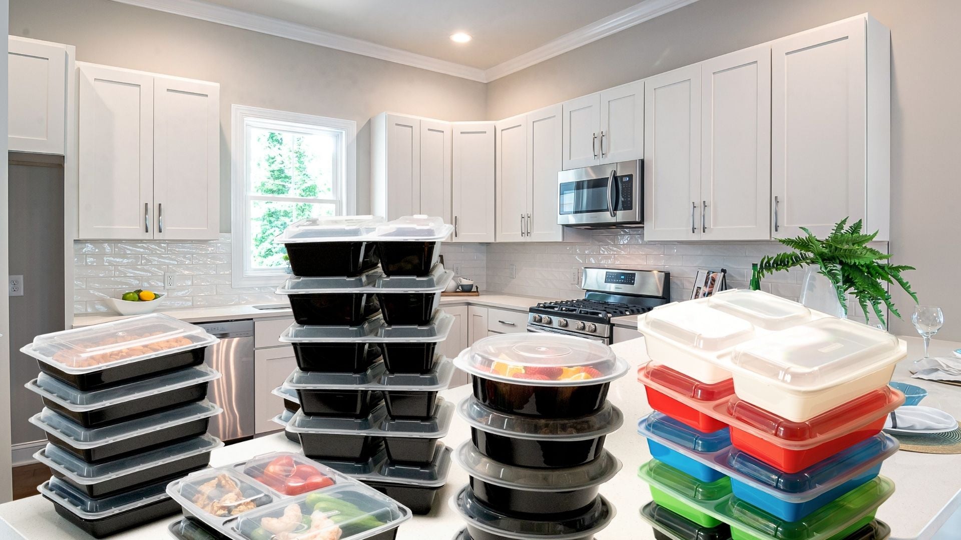 50 Pack 5 Mixed Color 3-Compartment Reusable Meal Prep Containers [942ml]